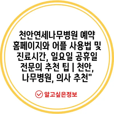 ✅ 천안연세나무병원 예약 방법과 꿀팁을 지금 바로 알아보세요!