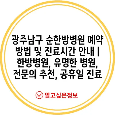 ✅ 광주남구 순한방병원 예약 방법을 자세히 알아보세요.