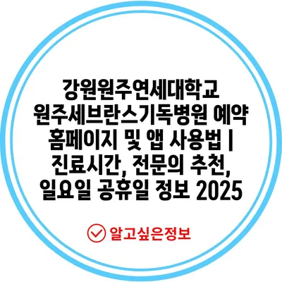 강원원주연세대학교 원주세브란스기독병원 예약 홈페이지 및 앱 사용법 | 진료시간, 전문의 추천, 일요일 공휴일 정보 2025