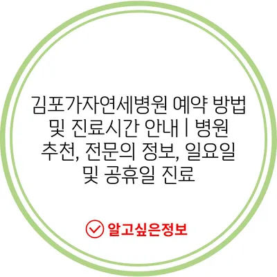 ✅ 김포가자연세병원의 진료시간과 예약 방법을 자세히 알아보세요.