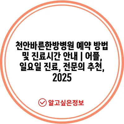 천안바른한방병원 예약 방법 및 진료시간 공지 | 어플, 일요일 진료, 전연락 추천, 2025 에 대해 자주 묻는 질문 TOP 5