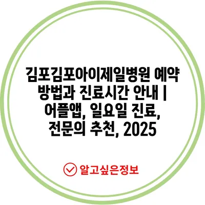 김포김포아이제일병원 예약 방법과 진료시간 공지 | 어플앱, 일요일 진료, 전연락 추천, 2025에 대해 알아보겠습니다.