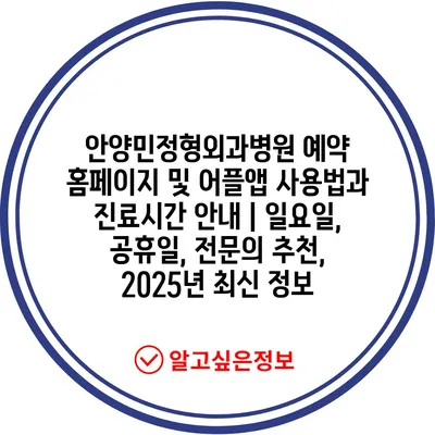 안양민정형외과병원 예약 홈페이지 및 어플앱 사용법과 진료시간 공지 | 일요일, 공휴일, 전연락 추천, 2025년 최신 정보 에 대해 자주 묻는 질문 TOP 5
