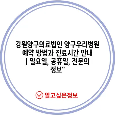 강원양구의료법인 양구우리병원 예약 방법과 진료시간 안내 | 일요일, 공휴일, 전문의 정보”