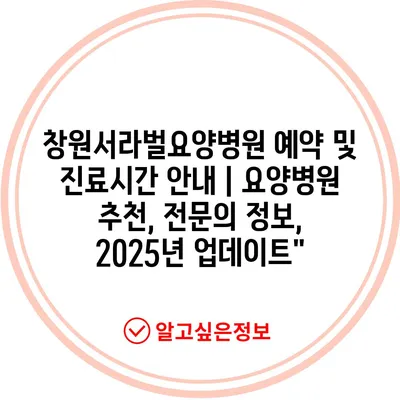 창원서라벌요양병원 예약 및 진료시간 공지 | 요양병원 추천, 전연락 정보, 2025년 업데이트