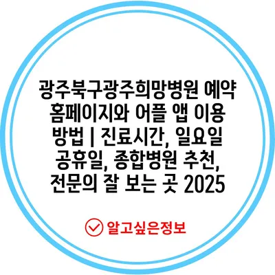 ✅ 광주희망병원의 진료시간과 예약 방법을 알아보세요!