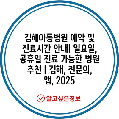 ✅ 김해아동병원의 예약 및 진료시간을 빠르게 확인하세요!
