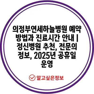 의정부연세하늘병원 예약 방법과 진료시간 공지 | 정신병원 추천, 전연락 정보, 2025년 공휴일 운영 에 대해 자주 묻는 질문 TOP 5