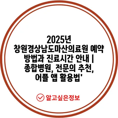 2025년 창원경상남도마산의료원 예약 방법과 진료시간 공지 | 종합병원, 전연락 추천, 어플 앱 활용법’ 에 대해 자주 묻는 질문 TOP 5