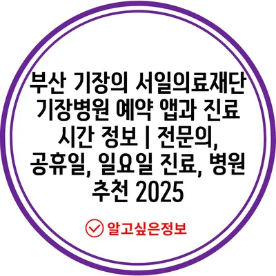 부산 기장의 서일의료재단 기장병원 예약 앱과 진료 시간 정보 | 전연락, 공휴일, 일요일 진료, 병원 추천 2025 에 대해 자주 묻는 질문 TOP 5