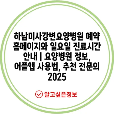✅ 하남미사강변요양병원의 예약 방법과 진료시간을 알아보세요!