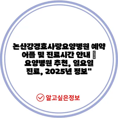 논산강경효사랑요양병원 예약 어플 및 진료시간 공지 | 요양병원 추천, 일요일 진료, 2025년 정보에 대해 알아보겠습니다.