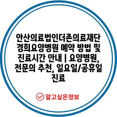 안산의료법인더존의료재단 경희요양병원 예약 방법 및 진료시간 공지 | 요양병원, 전연락 추천, 일요일/공휴일 진료 에 대해 자주 묻는 질문 TOP 5