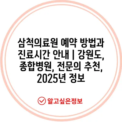 ✅ 삼척의료원의 예약 절차와 꿀팁을 알아보세요!