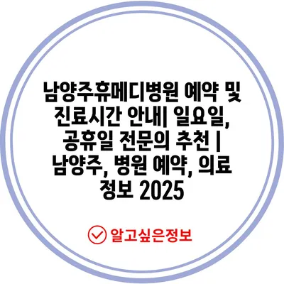 남양주휴메디병원 예약 및 진료시간 공지| 일요일, 공휴일 전연락 추천 | 남양주, 병원 예약, 의료 정보 2025