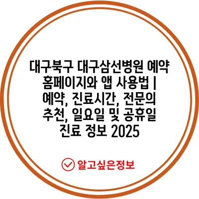 대구북구 대구삼선병원 예약 홈페이지와 앱 사용법 | 예약, 진료시간, 전연락 추천, 일요일 및 공휴일 진료 정보 2025에 대해 알아보겠습니다.