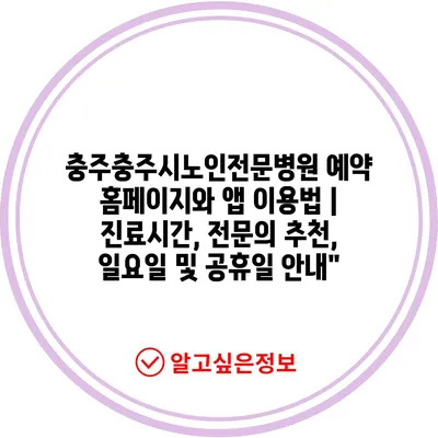충주충주시노인전문병원 예약 홈페이지와 앱 이용법 | 진료시간, 전문의 추천, 일요일 및 공휴일 안내”