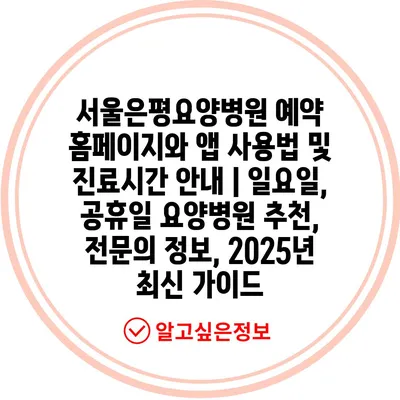 서울은평요양병원 예약 홈페이지와 앱 사용법 및 진료시간 공지 | 일요일, 공휴일 요양병원 추천, 전연락 정보, 2025년 최신 설명서 에 대해 자주 묻는 질문 TOP 5