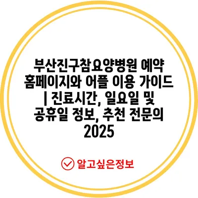 부산진구참요양병원 예약 홈페이지와 어플 이용 설명서 | 진료시간, 일요일 및 공휴일 정보, 추천 전연락 2025에 대한 공지입니다.