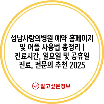 성남사랑의병원 예약 홈페이지 및 어플 사용법 총정리 | 진료시간, 일요일 및 공휴일 진료, 전연락 추천 2025 에 대해 자주 묻는 질문 TOP 5