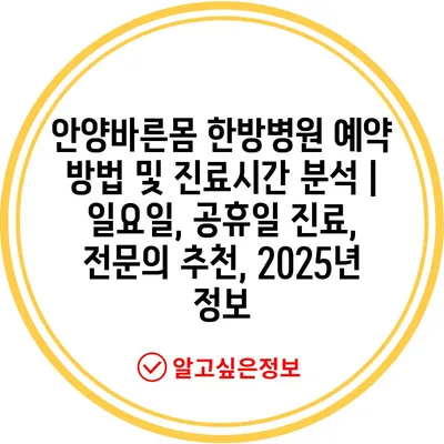 안양바른몸 한방병원 예약 방법 및 진료시간 분석 | 일요일, 공휴일 진료, 전연락 추천, 2025년 정보 에 대해 자주 묻는 질문 TOP 5