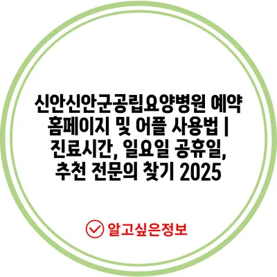 신안신안군공립요양병원 예약 홈페이지 및 어플 사용법 | 진료시간, 일요일 공휴일, 추천 전연락 찾기 2025에 대해 알아보겠습니다.