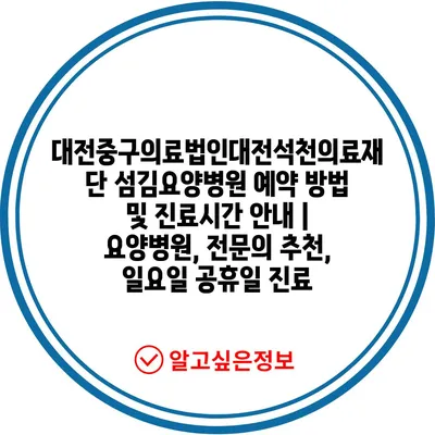 ✅ 대전석천의료재단의 진료시간과 예약 방법을 자세히 알아보세요.