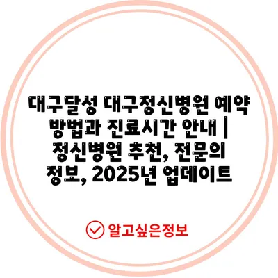 대구달성 대구정신병원 예약 방법과 진료시간 공지 | 정신병원 추천, 전연락 정보, 2025년 업데이트 에 대해 자주 묻는 질문 TOP 5