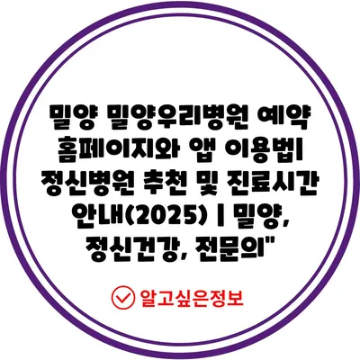 밀양 밀양우리병원 예약 홈페이지와 앱 이용법| 정신병원 추천 및 진료시간 공지(2025) | 밀양, 정신건강, 전연락