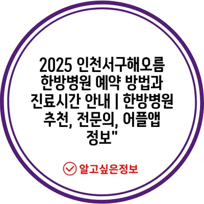 ✅ 2025 인천서구해오름 한방병원 예약 방법을 지금 바로 알아보세요!