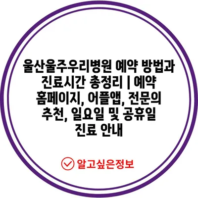 ✅ 울산울주우리병원의 진료시간과 예약 방법을 자세히 알아보세요.
