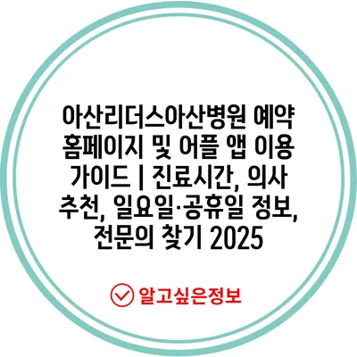 아산리더스아산병원 예약 홈페이지 및 어플 앱 이용 설명서 | 진료시간, 의사 추천, 일요일·공휴일 정보, 전연락 찾기 2025
