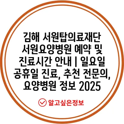 김해 서원탑의료재단 서원요양병원 예약 및 진료시간 공지 | 일요일 공휴일 진료, 추천 전연락, 요양병원 정보 2025 에 대해 자주 묻는 질문 TOP 5