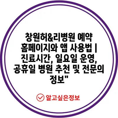 창원허&리병원 예약 홈페이지와 앱 사용법 | 진료시간, 일요일 운영, 공휴일 병원 추천 및 전연락 정보