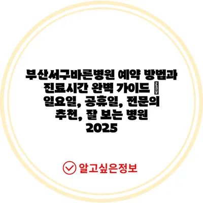 ✅ 부산서구바른병원의 진료시간과 예약 방법을 자세히 알아보세요.