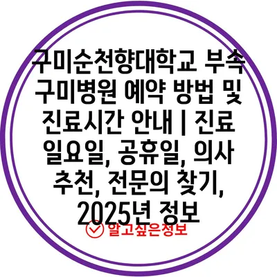 구미순천향대학교 부속 구미병원 예약 방법 및 진료시간 공지 | 진료 일요일, 공휴일, 의사 추천, 전연락 찾기, 2025년 정보 에 대해 자주 묻는 질문 TOP 5