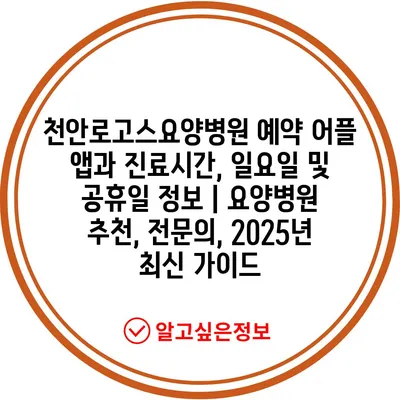천안로고스요양병원 예약 어플 앱과 진료시간, 일요일 및 공휴일 정보 | 요양병원 추천, 전연락, 2025년 최신 설명서 에 대해 자주 묻는 질문 TOP 5