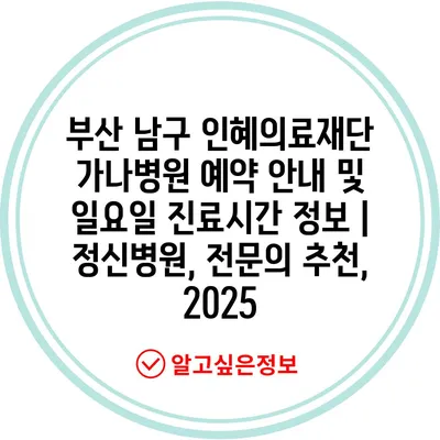 부산 남구 인혜의료재단 가나병원 예약 공지 및 일요일 진료시간 정보 | 정신병원, 전연락 추천, 2025 에 대해 자주 묻는 질문 TOP 5
