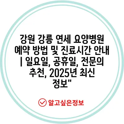 강원 강릉 연세 요양병원 예약 방법 및 진료시간 공지 | 일요일, 공휴일, 전연락 추천, 2025년 최신 정보