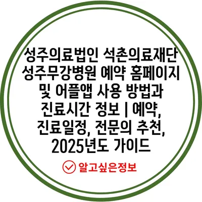 성주의료법인 석촌의료재단 성주무강병원 예약 홈페이지 및 어플앱 사용 방법과 진료시간 정보 | 예약, 진료일정, 전연락 추천, 2025년도 설명서 에 대해 자주 묻는 질문 TOP 5