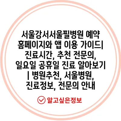 ✅ 서울강서서울필병원 예약 방법을 지금 바로 알아보세요!