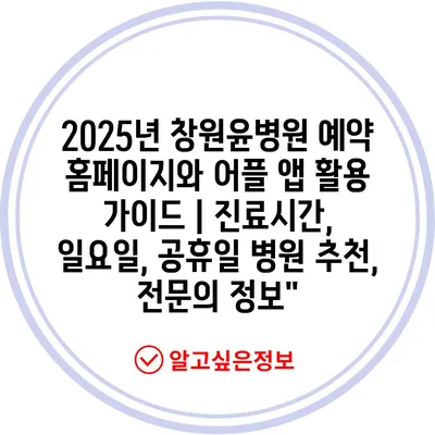 2025년 창원윤병원 예약 홈페이지와 어플 앱 활용 설명서로, 손쉬운 예약 방법과 병원 내용을 확인해 보세요.