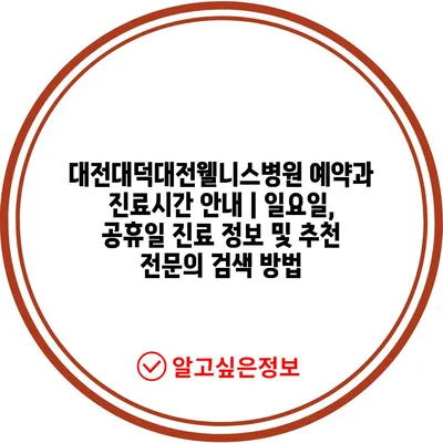대전대덕대전웰니스병원 예약과 진료시간 공지 | 일요일, 공휴일 진료 정보 및 추천 전연락 검색 방법