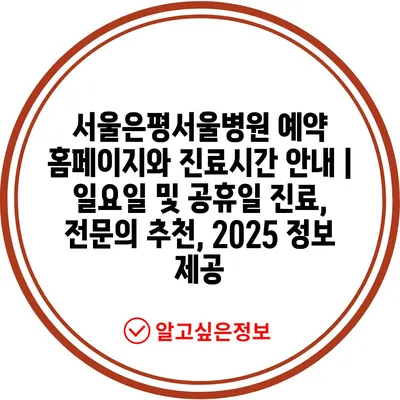 서울은평서울병원 예약 홈페이지와 진료시간 안내 | 일요일 및 공휴일 진료, 전문의 추천, 2025 정보 제공