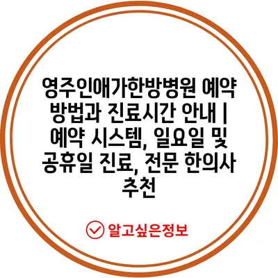 영주인애가한방병원 예약 방법과 진료시간 공지 | 예약 시스템, 일요일 및 공휴일 진료, 전문 한의사 추천 에 대해 자주 묻는 질문 TOP 5
