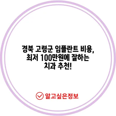 💡 경북 고령군의 임플란트 비용과 추천 치과를 자세히 알아보세요. 💡