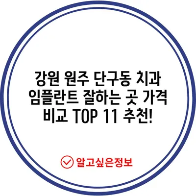 💡 강원 원주 단구동에서 최고의 임플란트 가격을 알아보세요! 💡