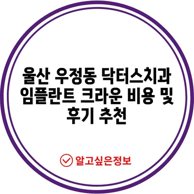 💡 울산 우정동 닥터스치과에서 임플란트 비용을 자세히 알아보세요. 💡