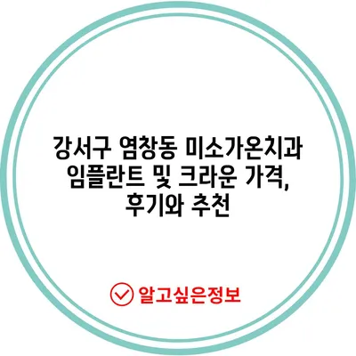2024년 강서구 염창동의 미소가온치과에서의 임플란트 및 크라운 비용과 후기, 추천 정보를 통해 최상의 치과 선택을 도와드립니다.