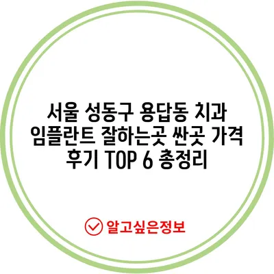 이제 서울 성동구 용답동에서 임플란트를 잘하는 치과를 최상위 6곳을 소개하겠습니다. 각 치과의 상세 정보와 함께 더 나은 결정을 내릴 수 있도록 도와드리겠습니다.